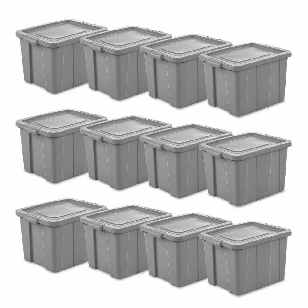 Sterilite 18 gal. Plastic Storage Tote with Lid in Gray (12-Pack)