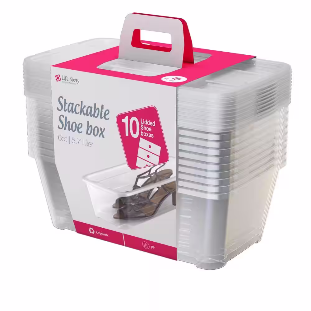 Life Story 5.7-Liter Shoe and Closet Storage Box Stacking Containers, Clear (10 Pack)