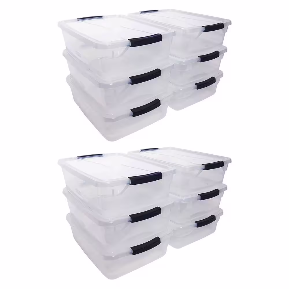 Sterilite 25 Qt. Capacity Clear Plastic Storage Tote Bins with Lids (12-Pack)