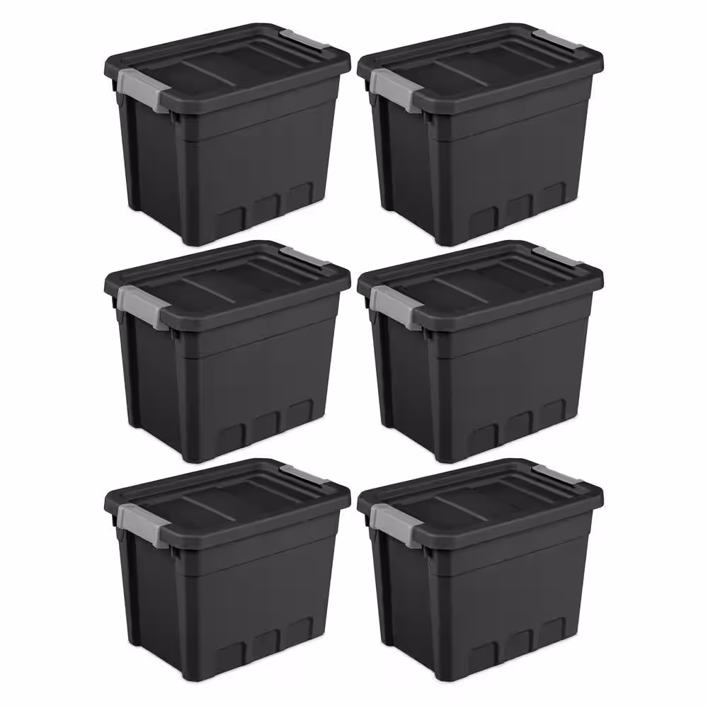 Sterilite 7.5 gal. Rugged Industrial Storage Totes with Latch Lid in Black (6-Pack)