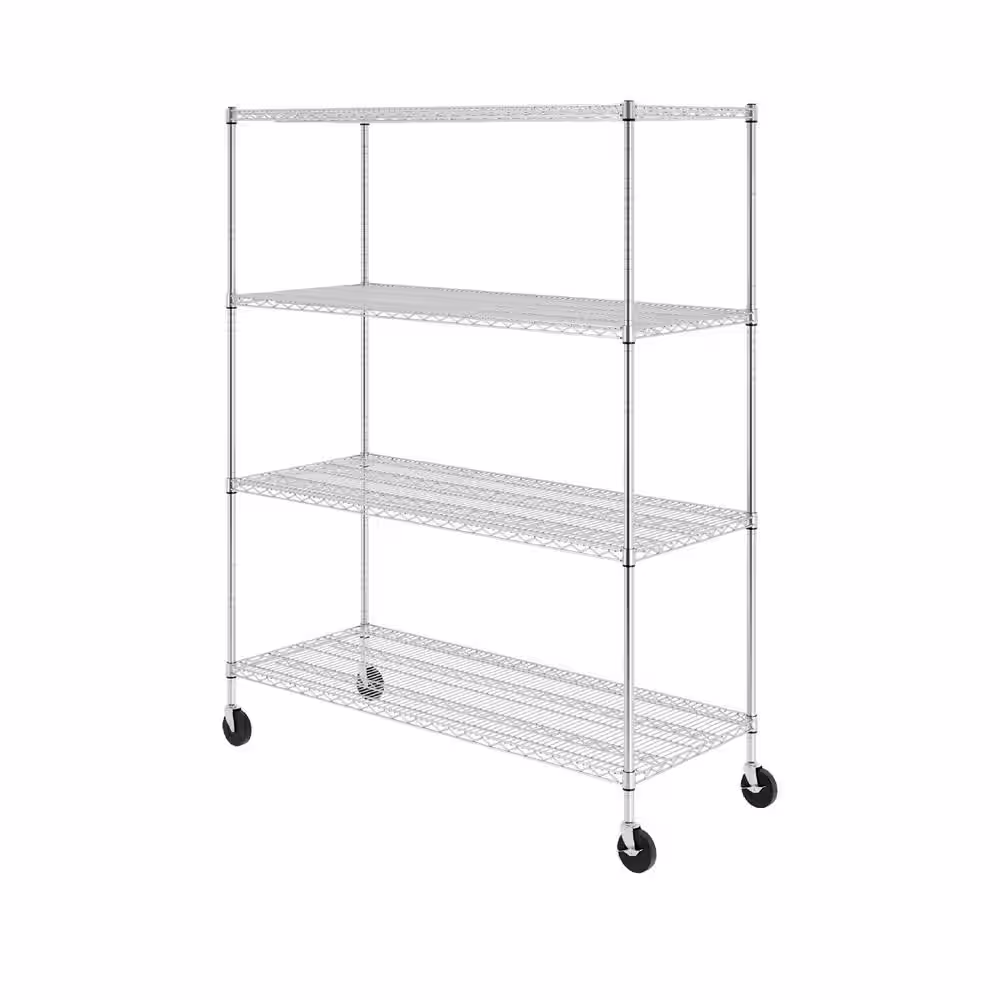 SafeRacks 72 in. H x 48 in. W x 18 in. D NSF 4-Tier Wire Chrome Shelving Rack with Wheels