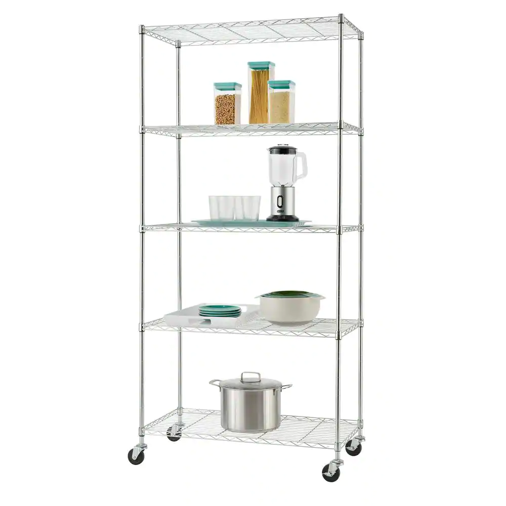 TRINITY EcoStorage Chrome 5-Tier Rolling Steel Wire Shelving Unit (36 in. W x 76 in. H x 18 in. D)