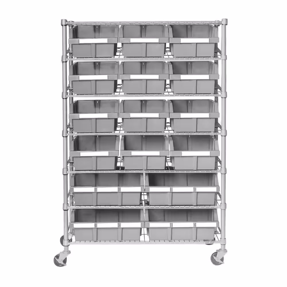 Seville Classics Commercial Gray 7-Tier 16-Bin Rack NSF Garage Storage Shelving Unit 36 in. W x 56 in. H x 14 in. D