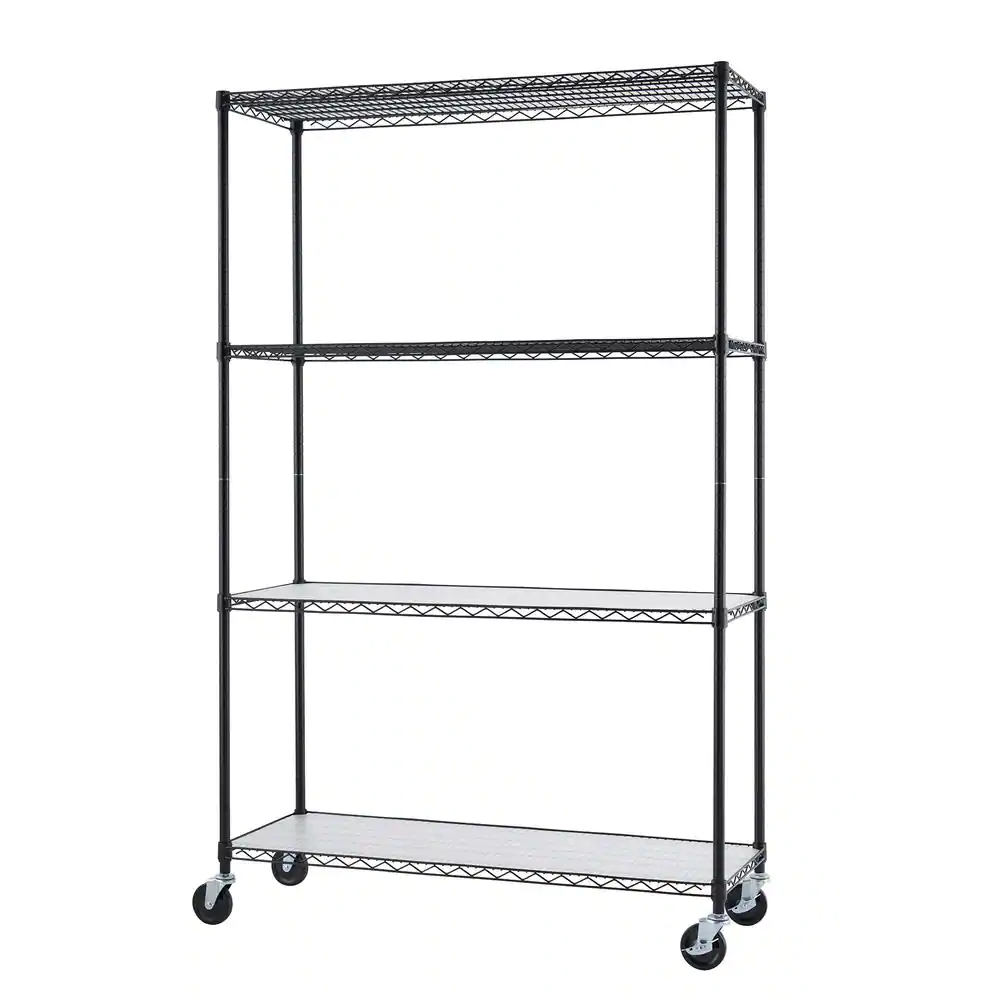 TRINITY EcoStorage Black 4-Tier Rolling Steel Wire Shelving Unit (48 in. W x 77 in. H x 18 in. D)