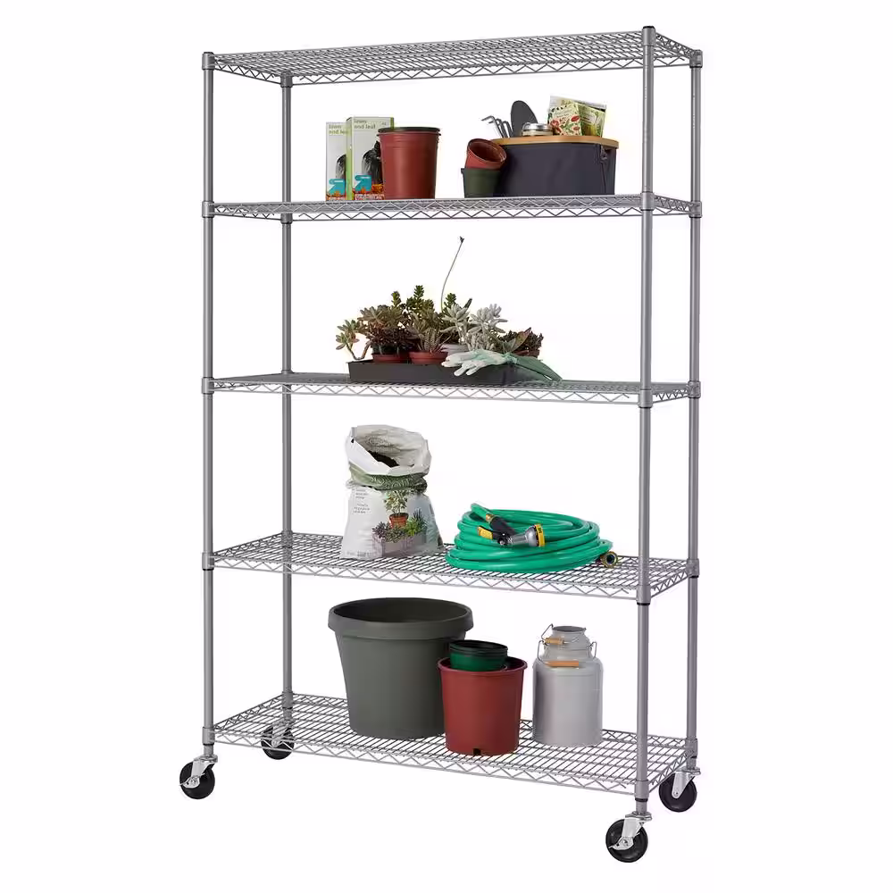TRINITY EcoStorage Chrome Rolling 5-Tier Steel Wire Shelving Unit (18 in. W x 57 in. H x 18 in. D)