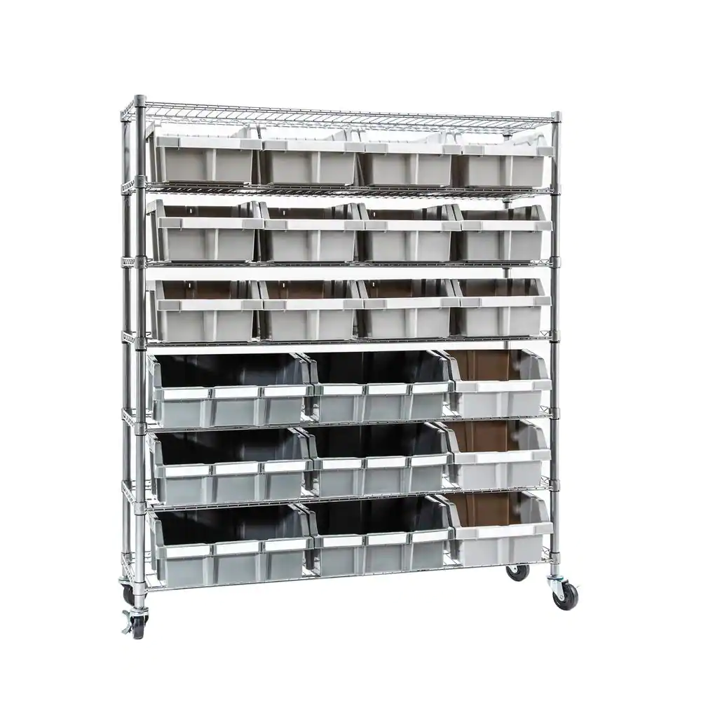 Seville Classics Commercial Gray 7-Tier 21-Bin Rack NSF Steel Extra-Large Garage Storage Shelving Unit, 48 in. W x 52.5 in. H x 14 in. D