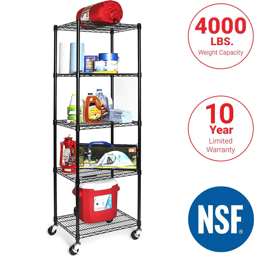 Seville Classics Black 5-Tier Rolling Steel Wire Shelving Unit (24 in. W x 75 in. H x 18 in. D)