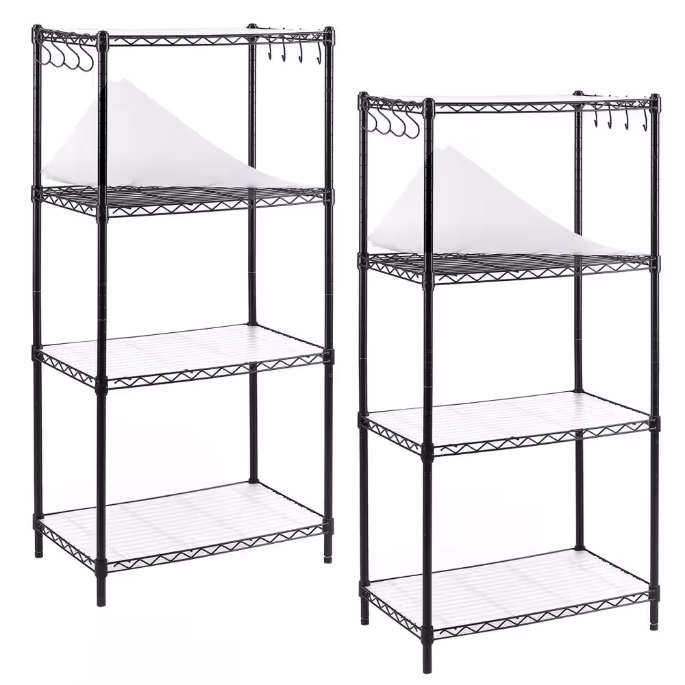 EFINE Black 4-Tier Carbon Steel Wire Garage Storage Shelving Unit with 8 Hooks (2-Pack) (23.6 in. W x 47 in. H x 14 in. D)