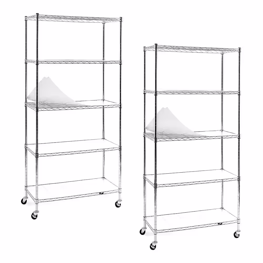 EFINE Chrome 5-Tier Rolling Carbon Steel Wire Garage Storage Shelving Unit Casters (2-Pack) (30 in. W x 63 in. H x 14 in. D)