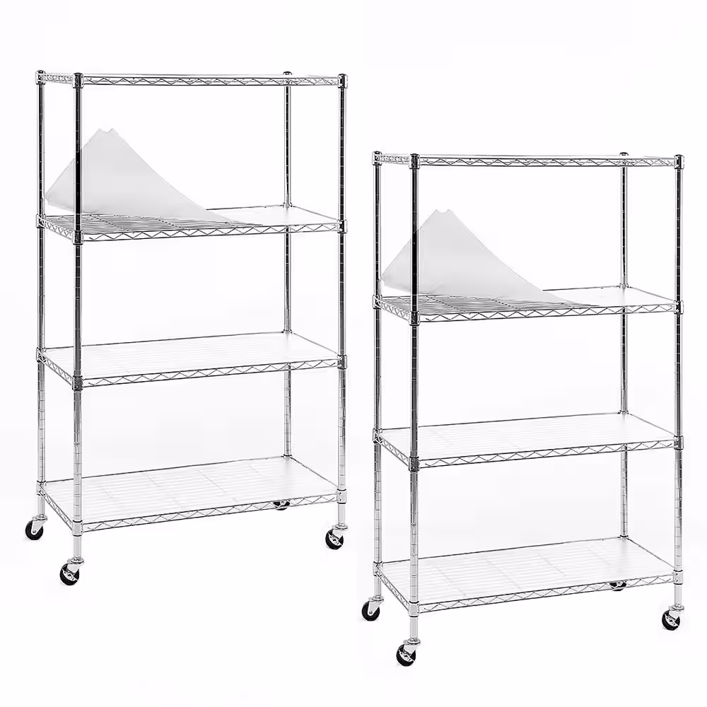 EFINE Chrome 4-Tier Rolling Carbon Steel Wire Garage Storage Shelving Unit Casters (2-Pack) (30 in. W x 50 in. H x 14 in. D)
