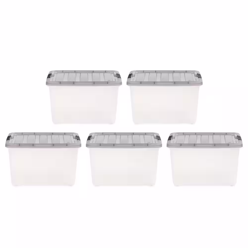 IRIS 40 qt. Stack & Pull Clear storage Box, Lid Gray (Pack of 5)