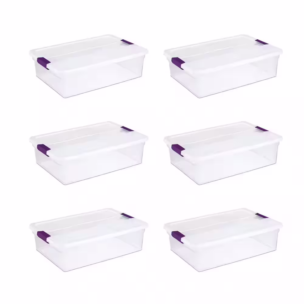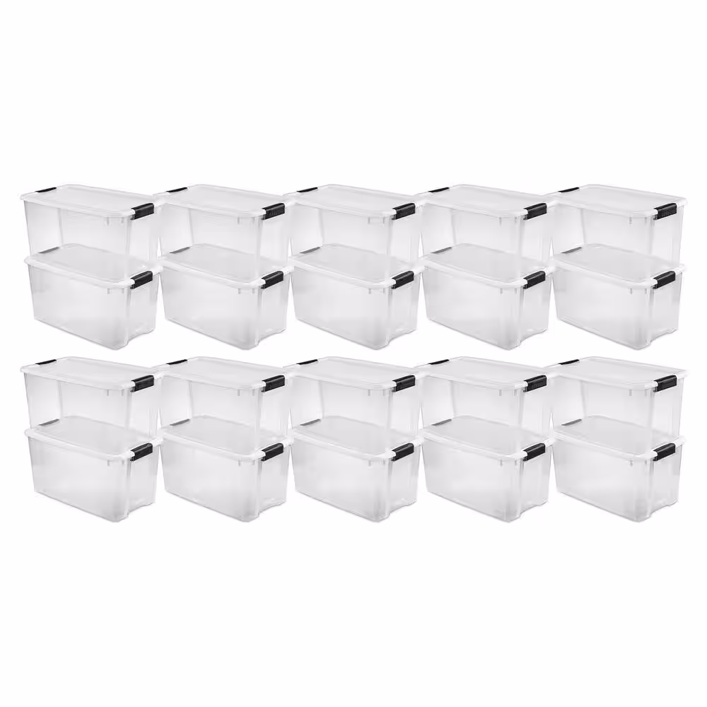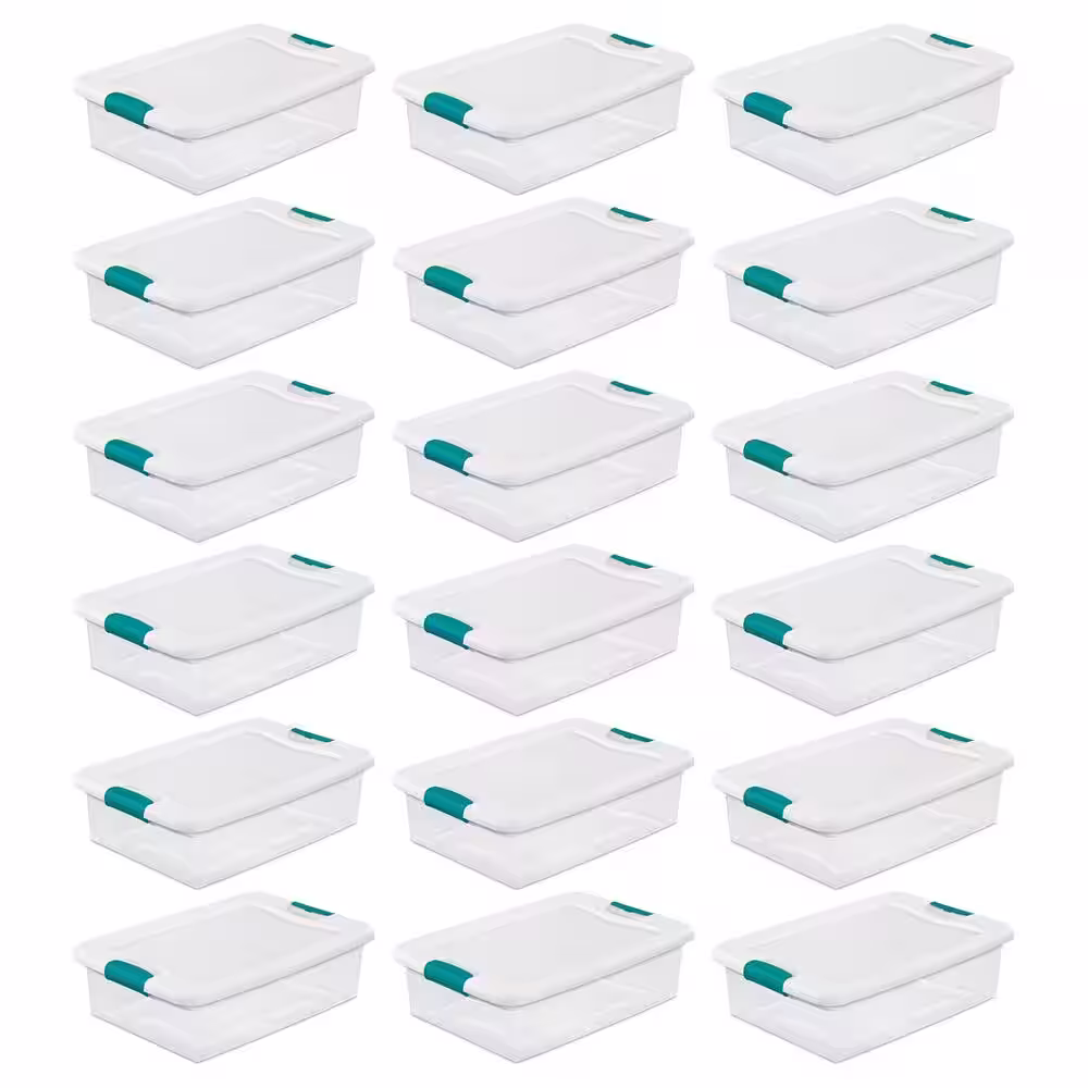 Sterilite 32 qt. Clear Stackable Latching Storage Box Containers, (18-Pack)