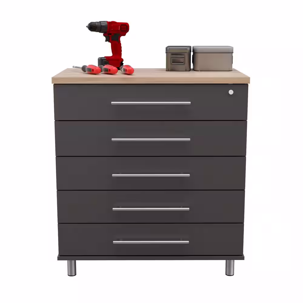 Inval KRATOS 31.5 in. W x 34.65 in. H x 19.69 in. D 5-Drawer Wood Garage Storage Freestanding Cabinet in Dark Gray/Maple