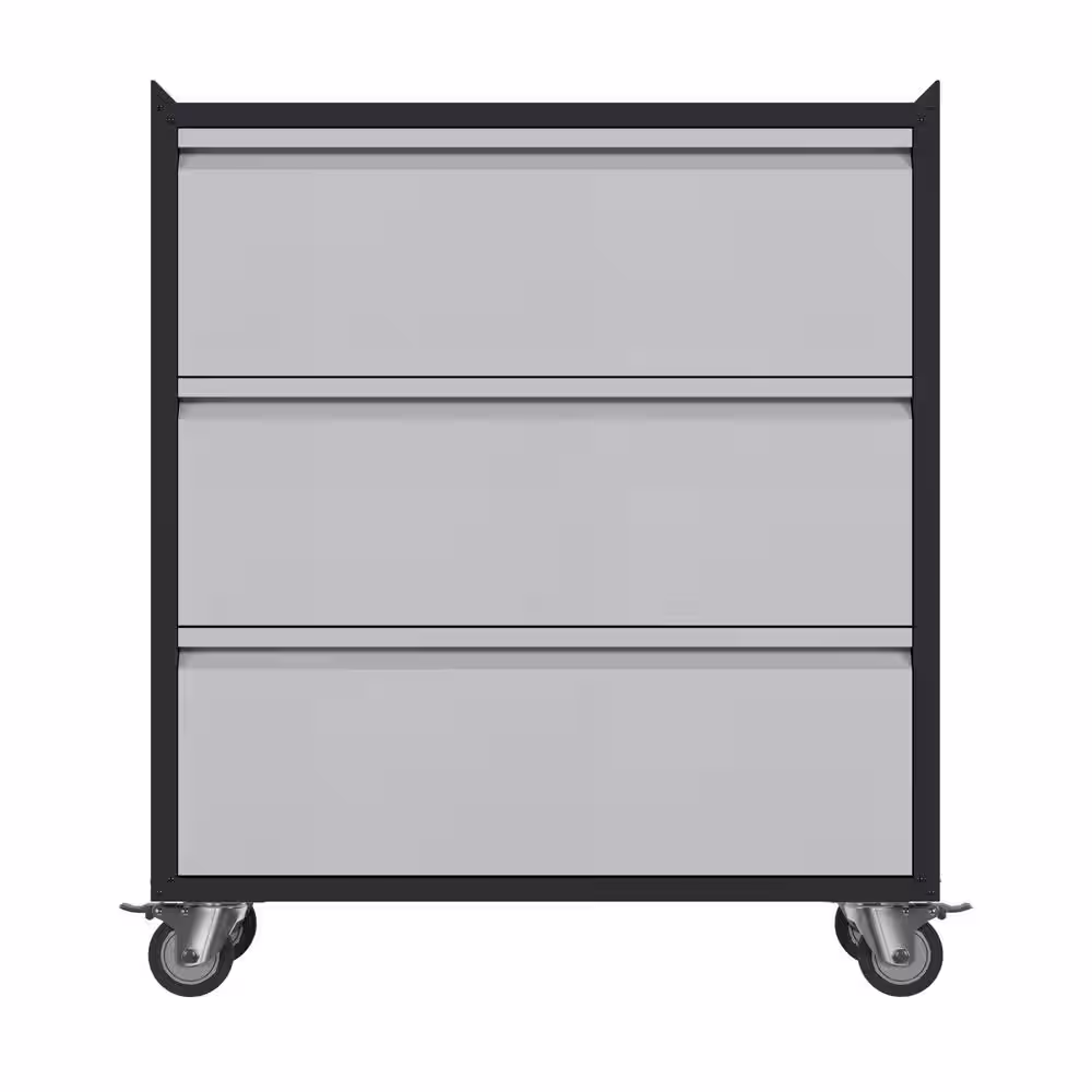 None Rolling Metal Storage Freestanding Cabinet 30.31 in. D x 18.11 in. W x 35.43 in. H with 3 Drawer Set in Black and Grey
