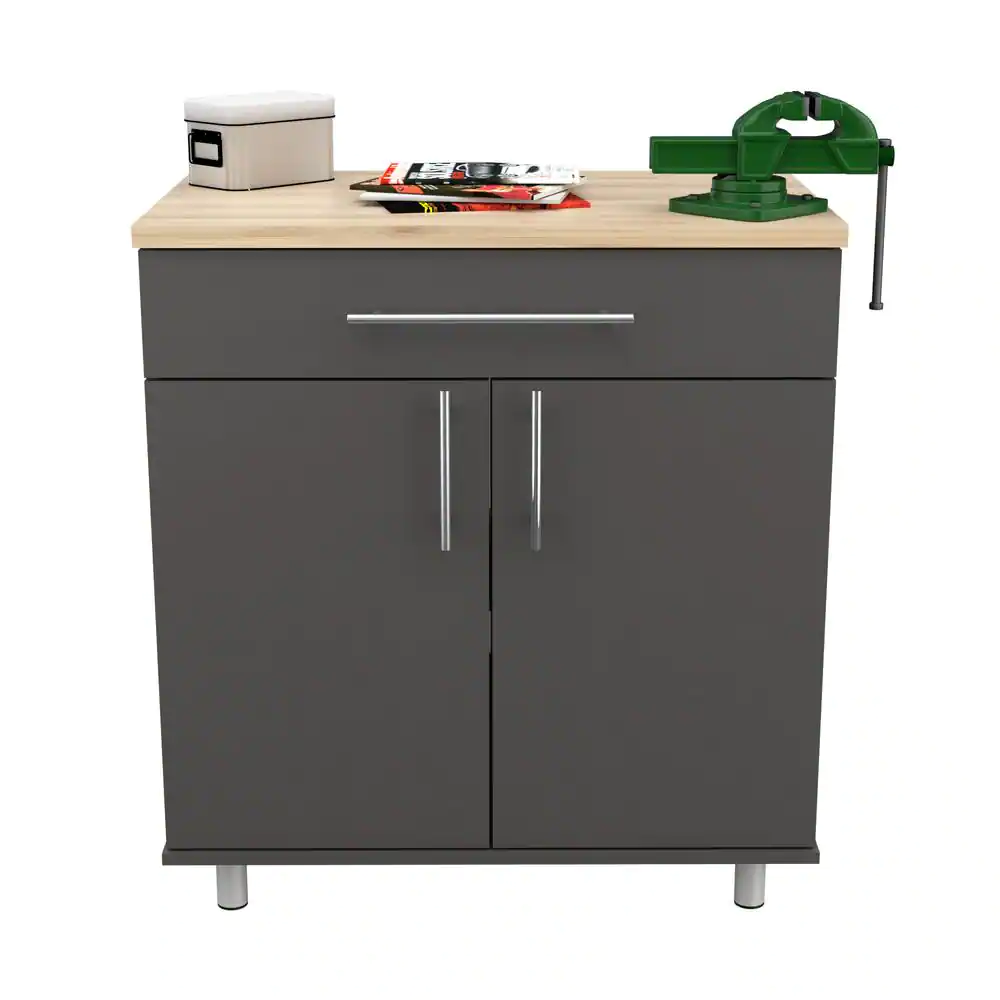 Inval KRATOS 31.5 in. W x 34.65 in. H x 19.69 in. D 2-Shelves Wood Garage Storage Freestanding Cabinet in Dark Gray/Maple