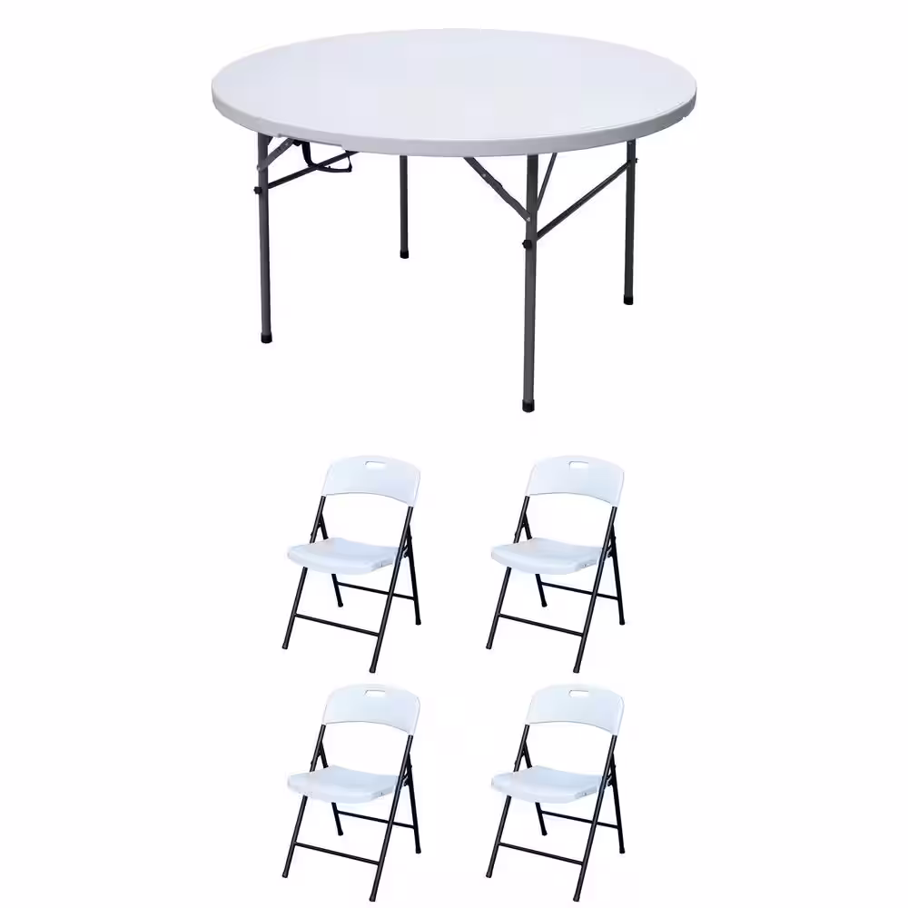 Plastic Development Group Group 4' Folding Banquet Table & 4 Outdoor Folding Chairs