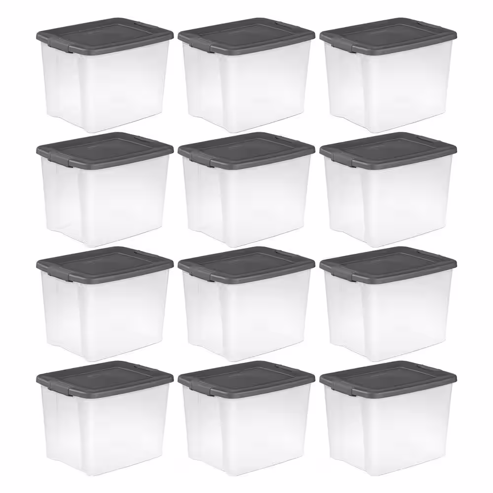 Sterilite 50 Qt. Stackable Latching Shelf tote Storage in Clear (12-Pack)