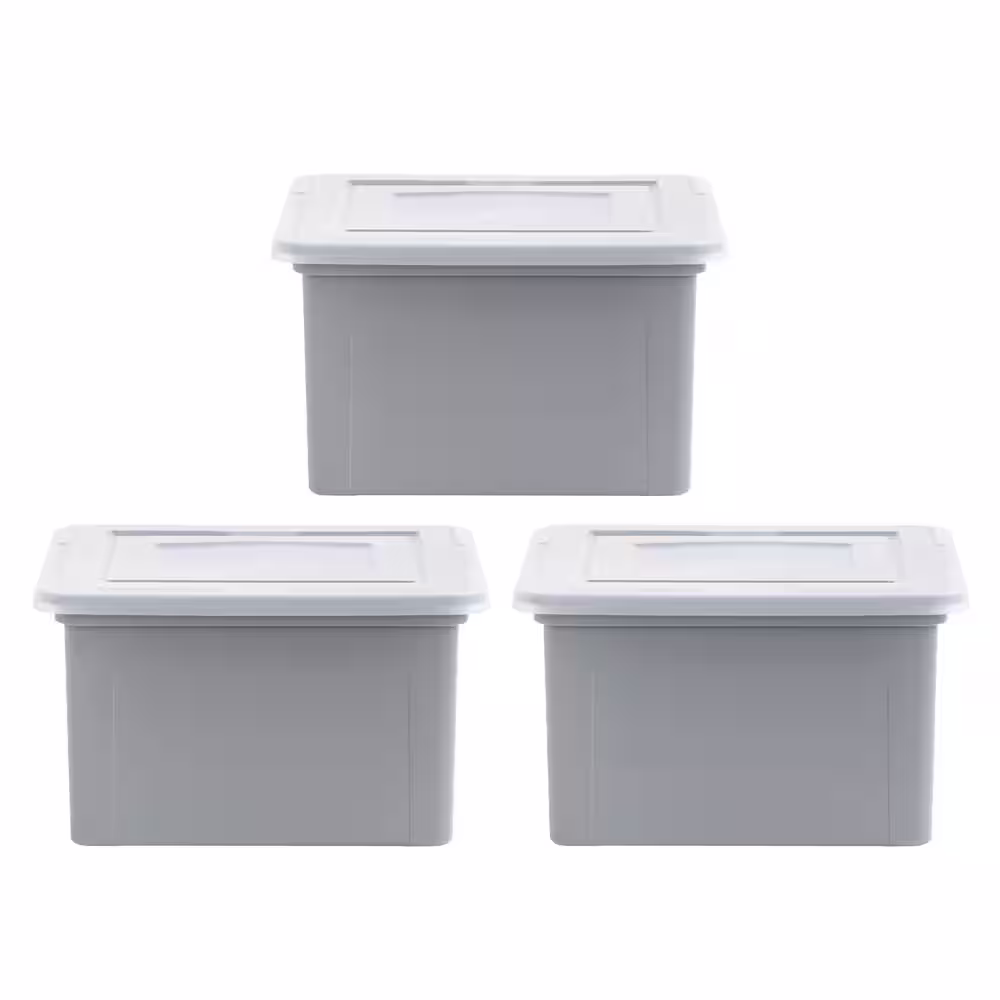 None 8.5-Gal. Snap Tight Plastic File Organizer Storage Box, Gray with Clear Lid 3 Pack