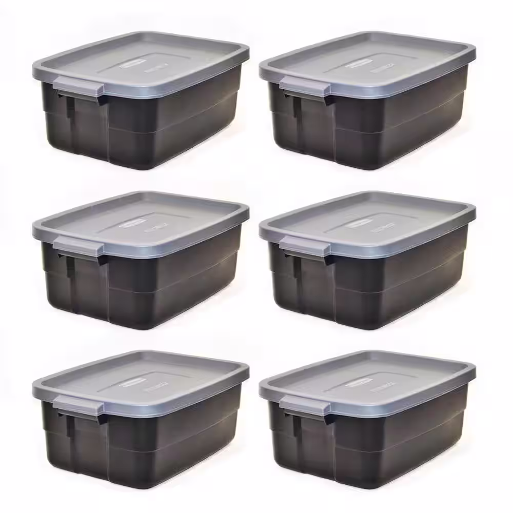 Rubbermaid Roughneck 10-Gal. Storage Tote Container in Black (6-Pack)