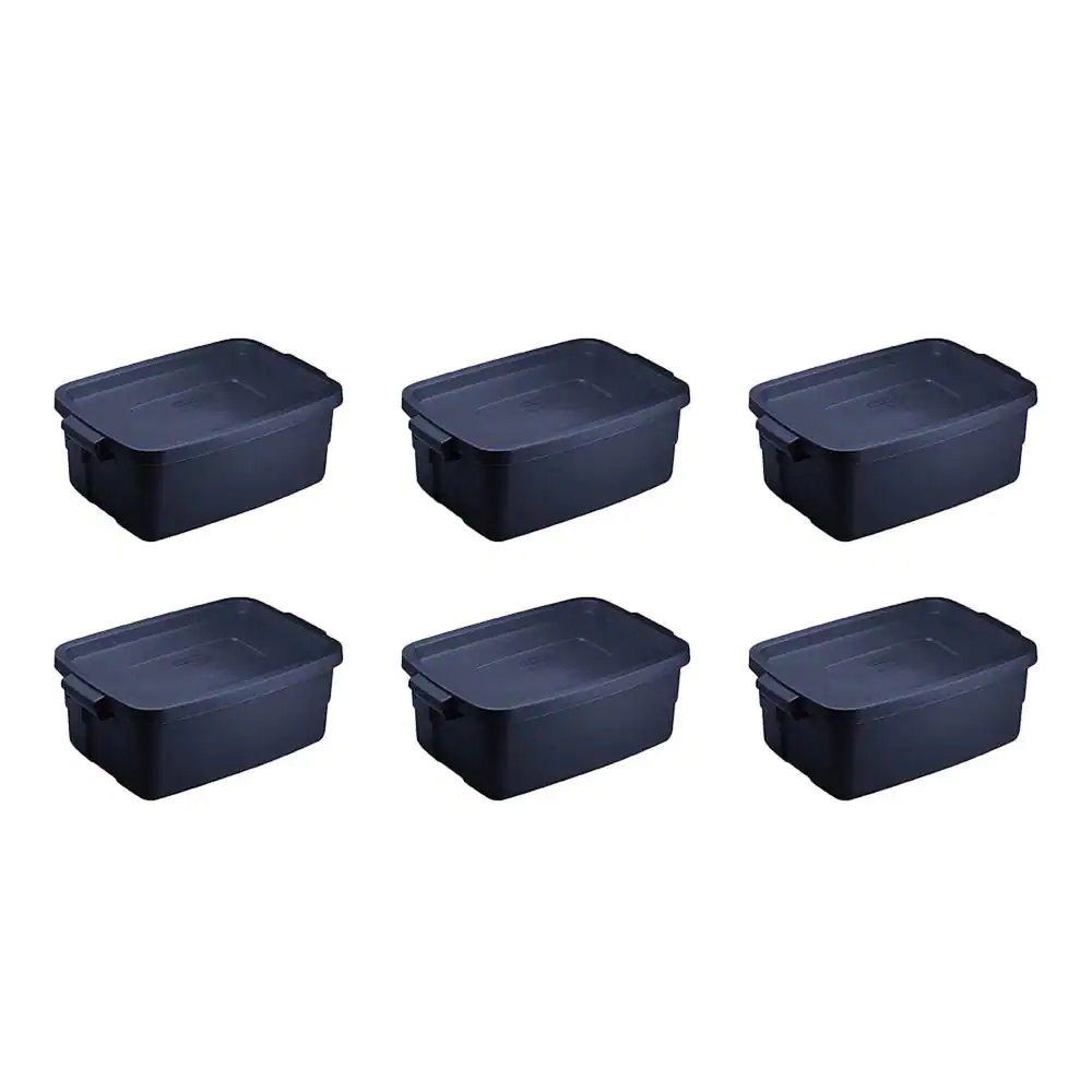 Rubbermaid Roughneck 10-Gal. Storage Tote Container in Heritage Blue (6-Pack)
