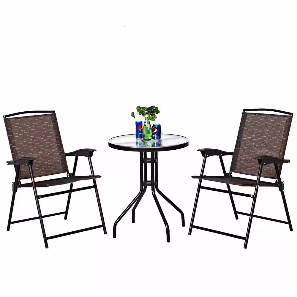 Boyel Living 3-Piece Brown Outdoor Folding Bistro Set Patio Garden Furniture Set