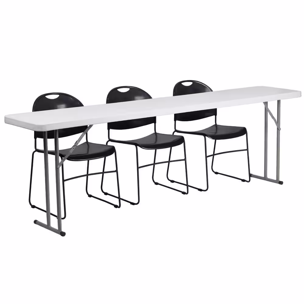 None 96 in. Black Plastic Tabletop Plastic Seat Folding Table and Chair Set