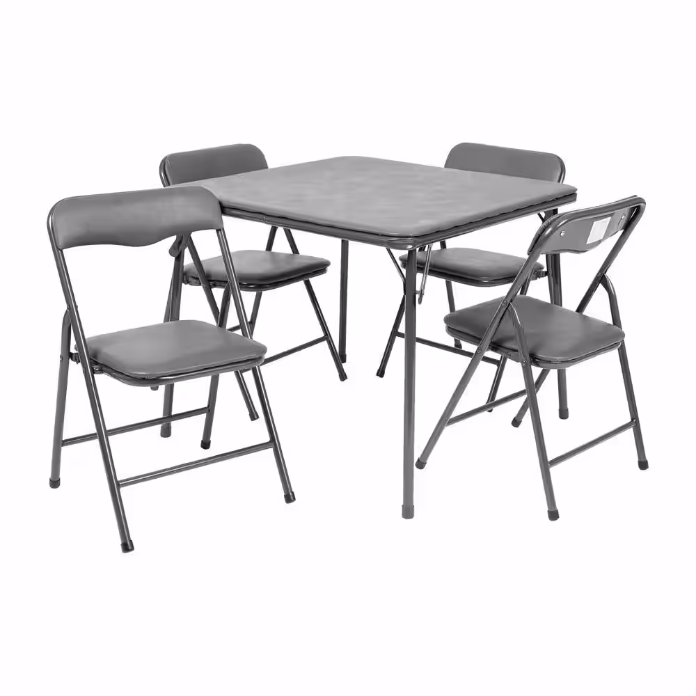 COSCO COSCO 5-Piece Folding Fabric Dining Set & 34â?Vinyl Card Table, Gray