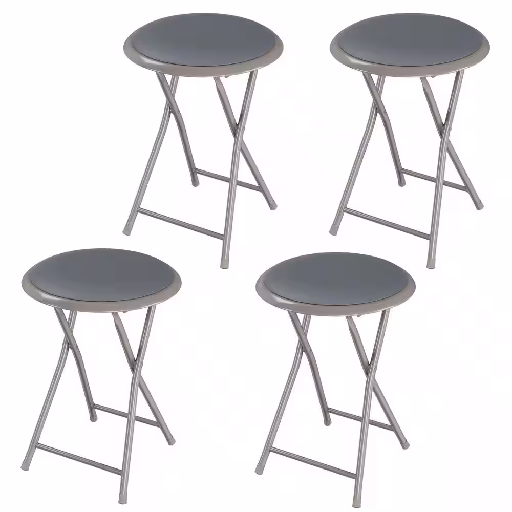 Trademark Home Gray Steel Padded Seats Folding Bar Stools 18 in. Set of 4
