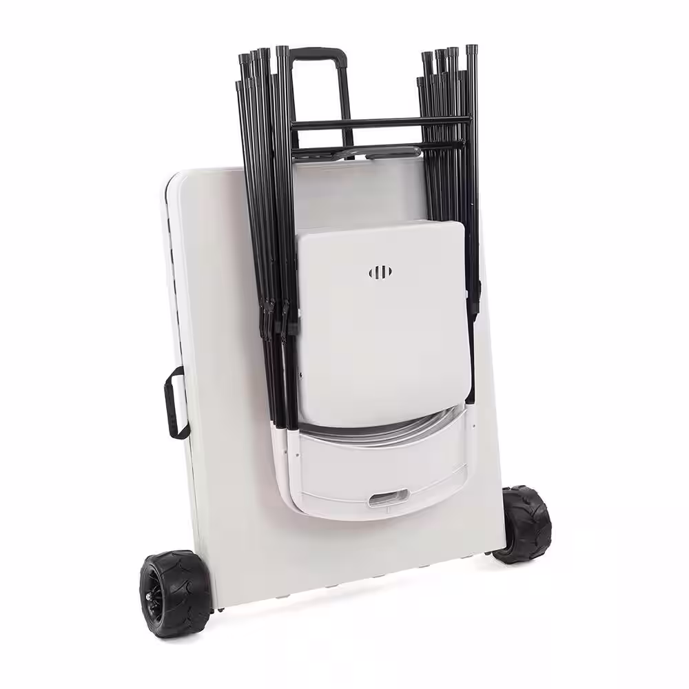 Creative Outdoor Rolling Table and 4 Folding Chairs Combo in White