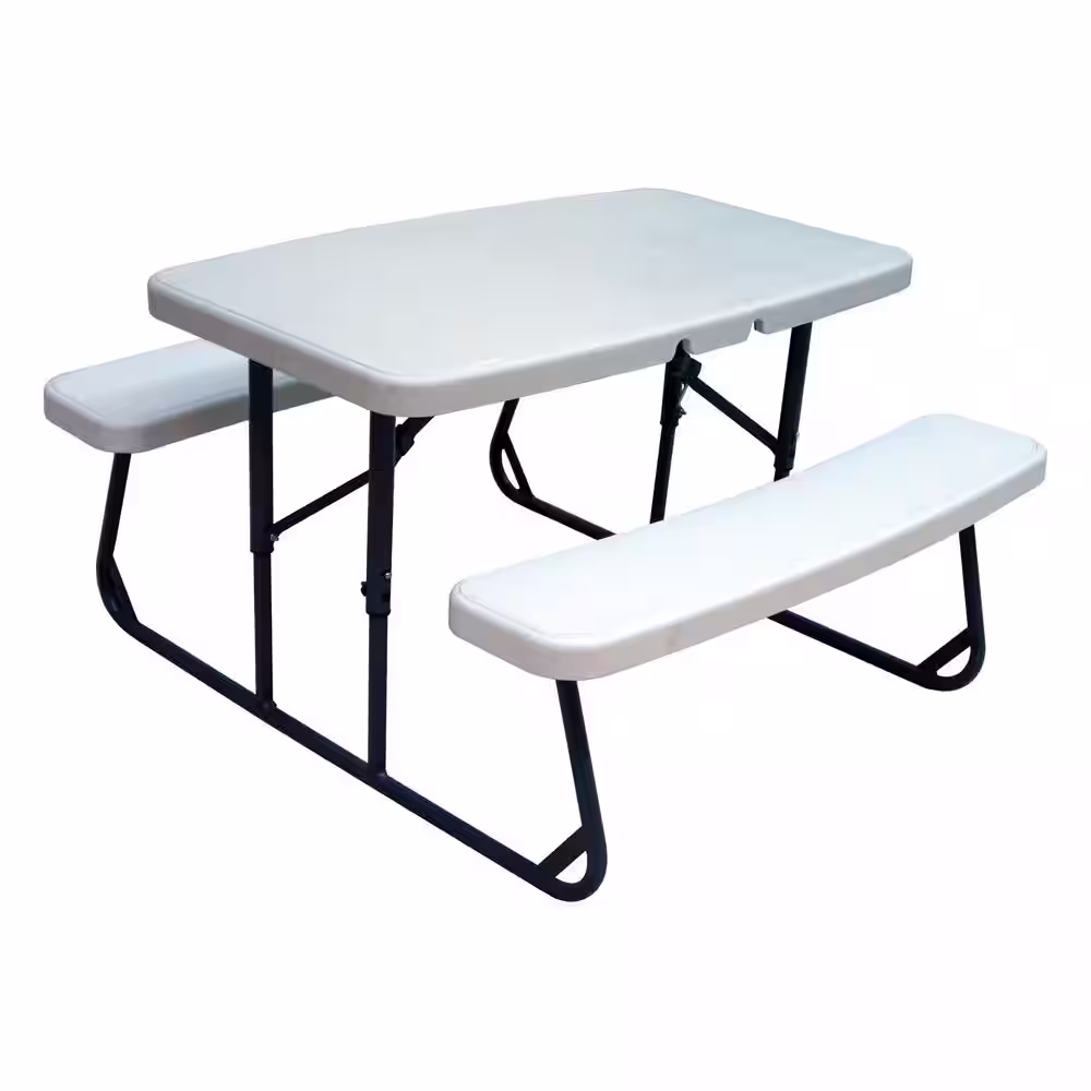 Plastic Development Group 3-Piece Plastic Development White Metal 2 Bench Kids Picnic Outdoor Table