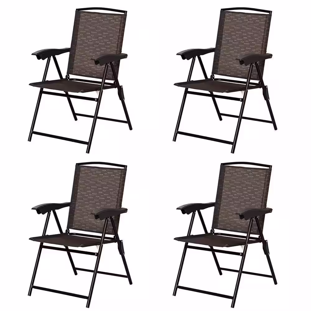 Costway 21 in. W x 33 in. D x 15 in. H Brown Metal Armrest Folding Chairs Patio Garden Camping (Set of 4-Chairs)