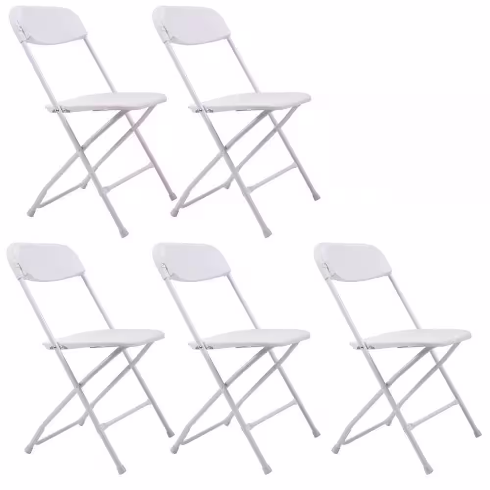 None White Double Braced Lightweight Plastic Folding Chair (Set of 5)