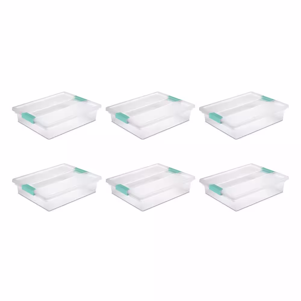 Sterilite Large File Clip Box Clear Storage Containers with Lid (6 Pack) 19638606