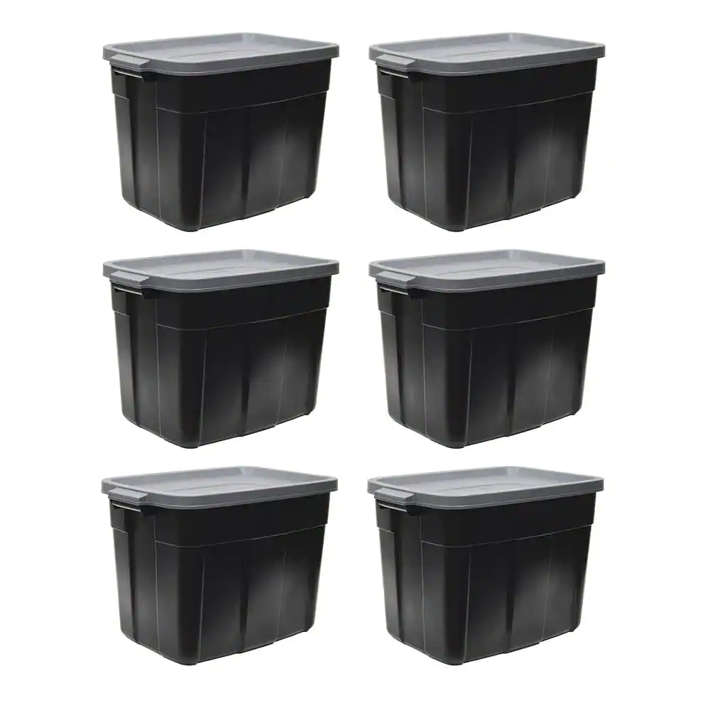 Rubbermaid Roughneck 18-Gal. Storage Tote Container Organizer in Black/Cool Gray (6-Pack)