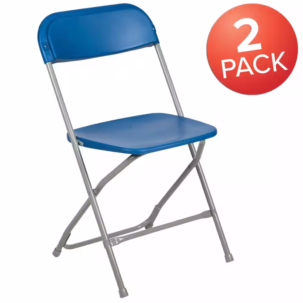 Carnegy Avenue Blue Plastic Seat with Metal Frame Folding Chair (Set of 2)