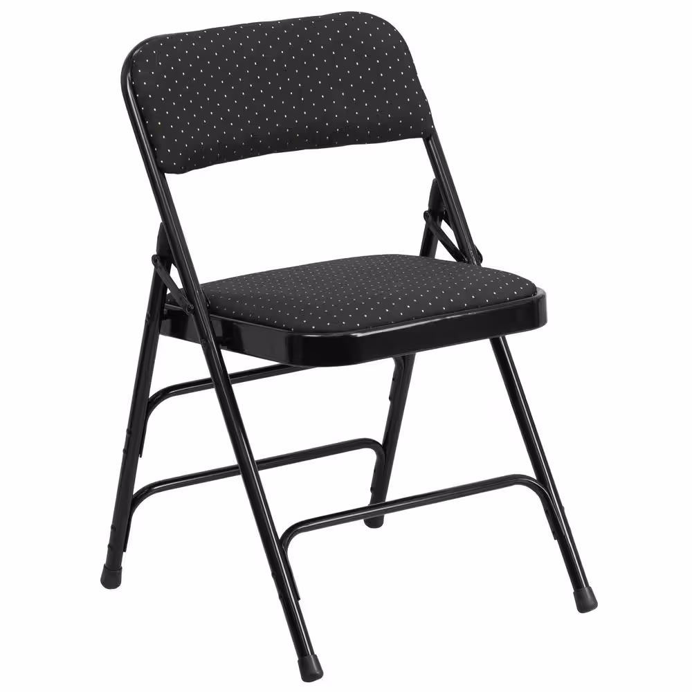 Flash Furniture Hercules Series Curved Triple Braced & Double Hinged Black Patterned Fabric Upholstered Metal Folding Chair