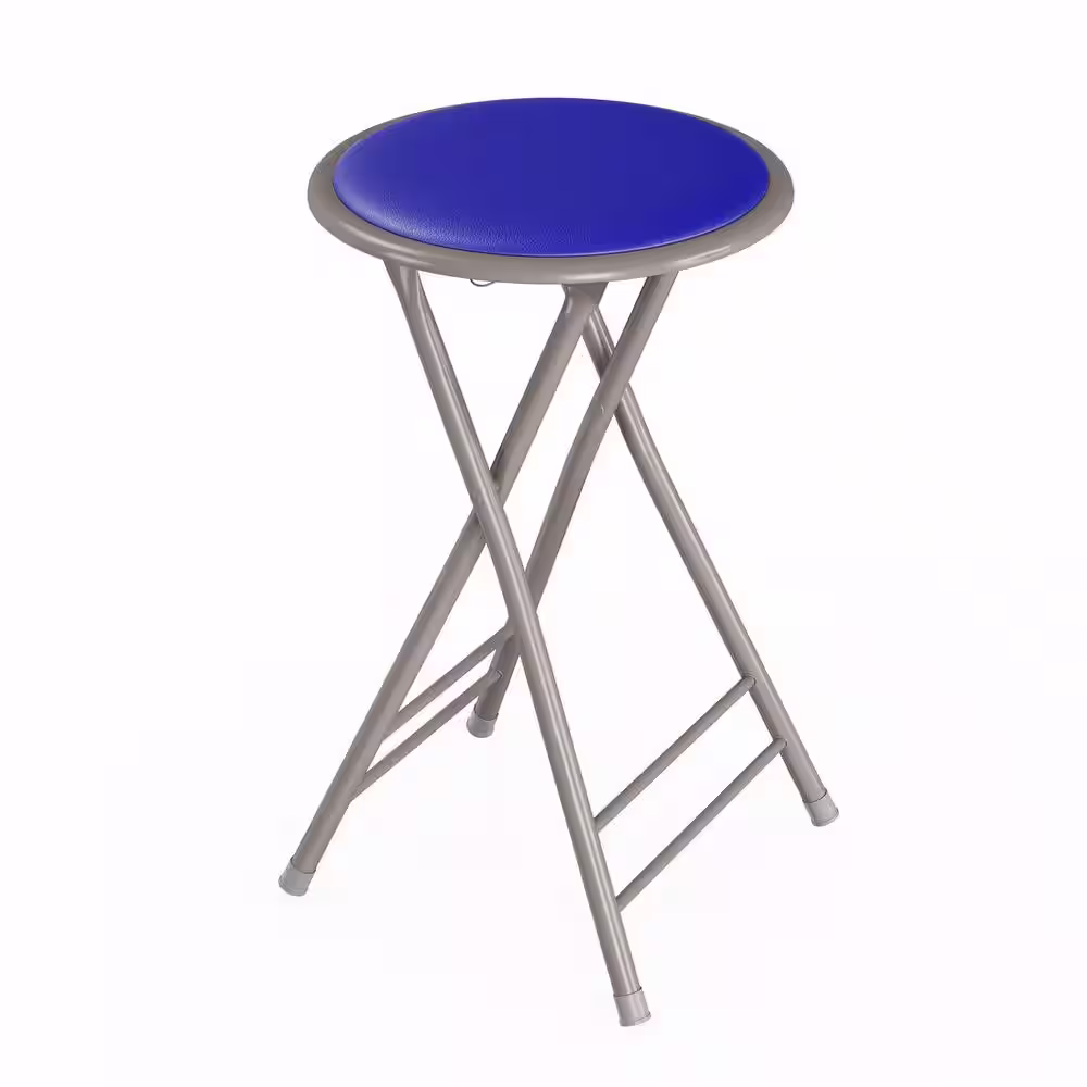 Trademark Home 24 in. Royal Blue Heavy-Duty Padded Round Folding Bar Stool
