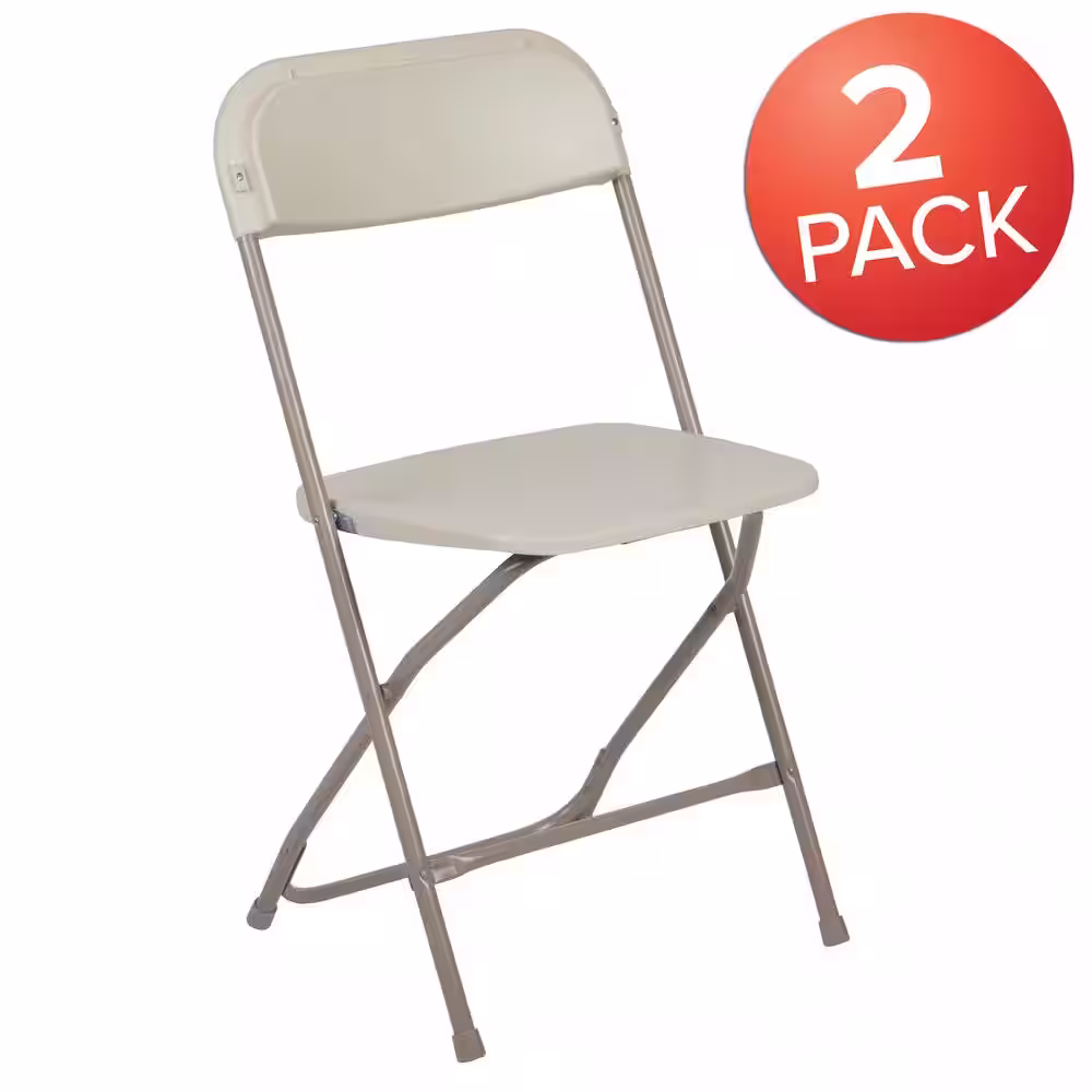 Carnegy Avenue Beige Plastic Seat with Metal Frame Folding Chair (Set of 2)