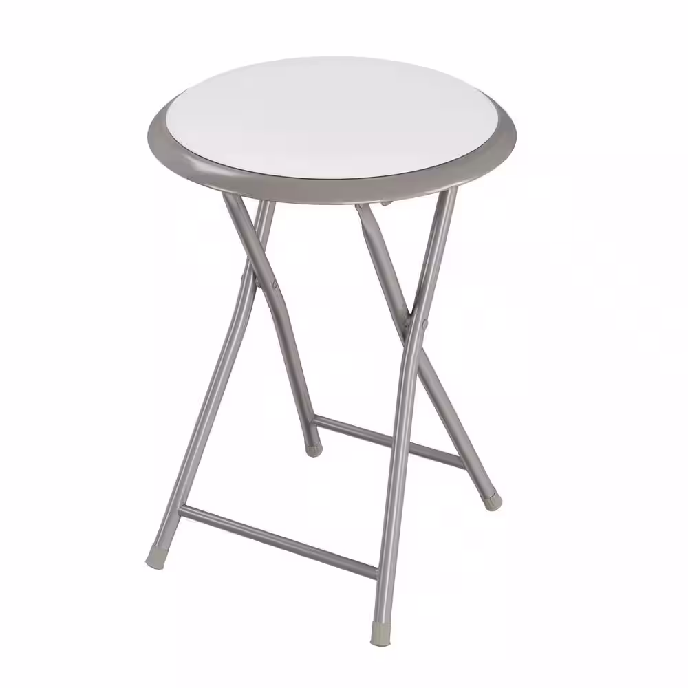 Trademark Home 18 in. White Round Metal Heavy-Duty Padded Folding Bar Stool