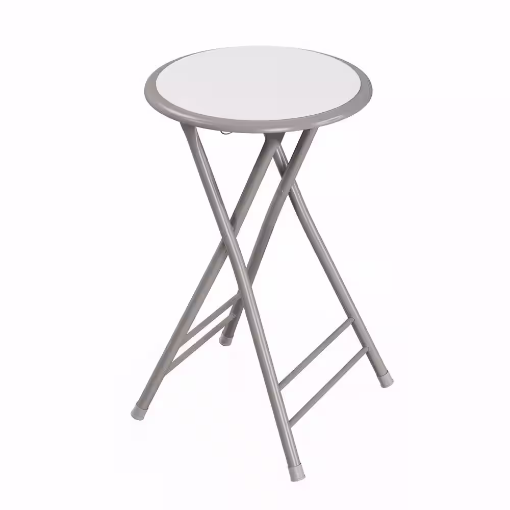 Trademark Home 24 in. White Heavy-Duty Padded Round Folding Bar Stool