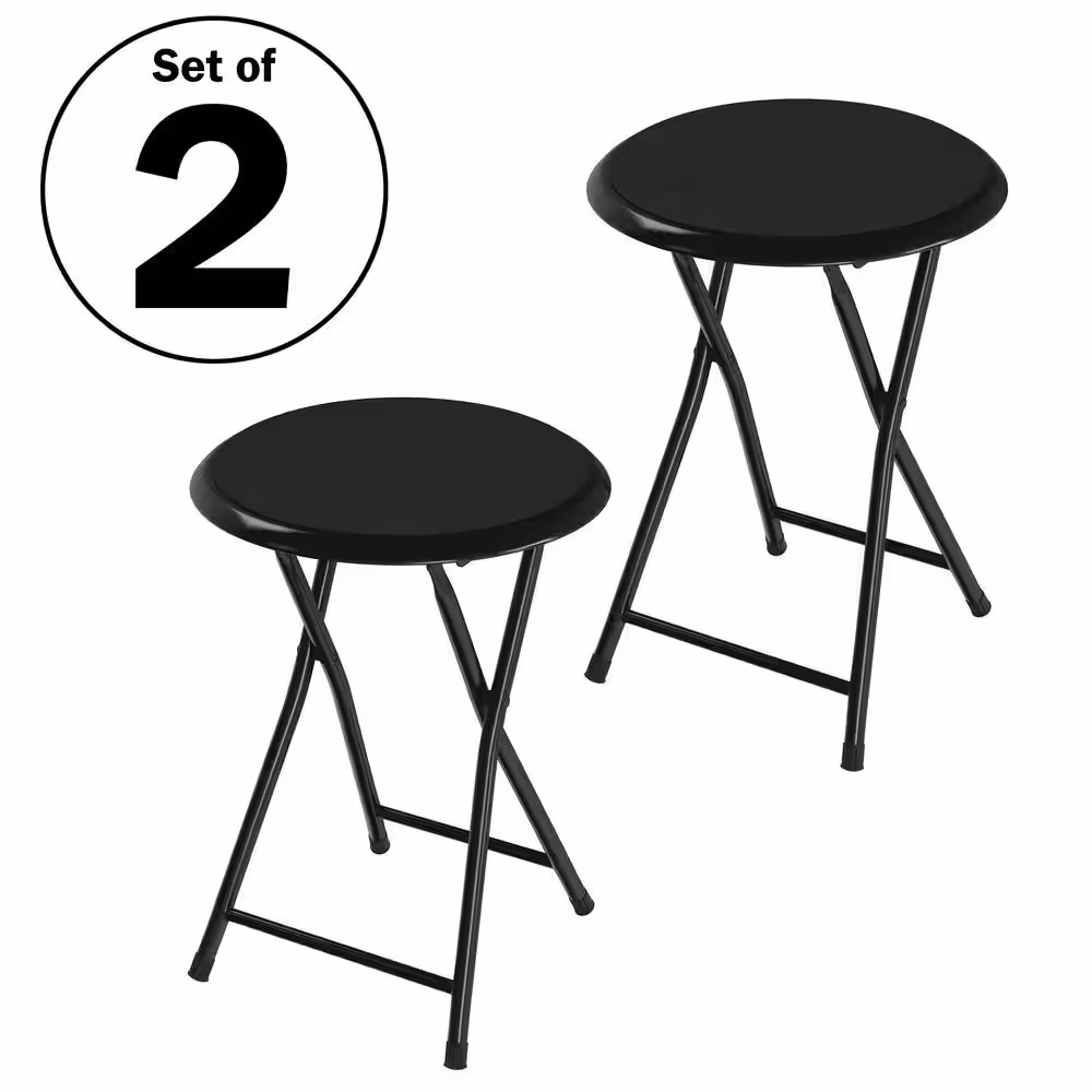 Lavish Home Black Steel Padded Seats Folding Bar Stools Set of 2