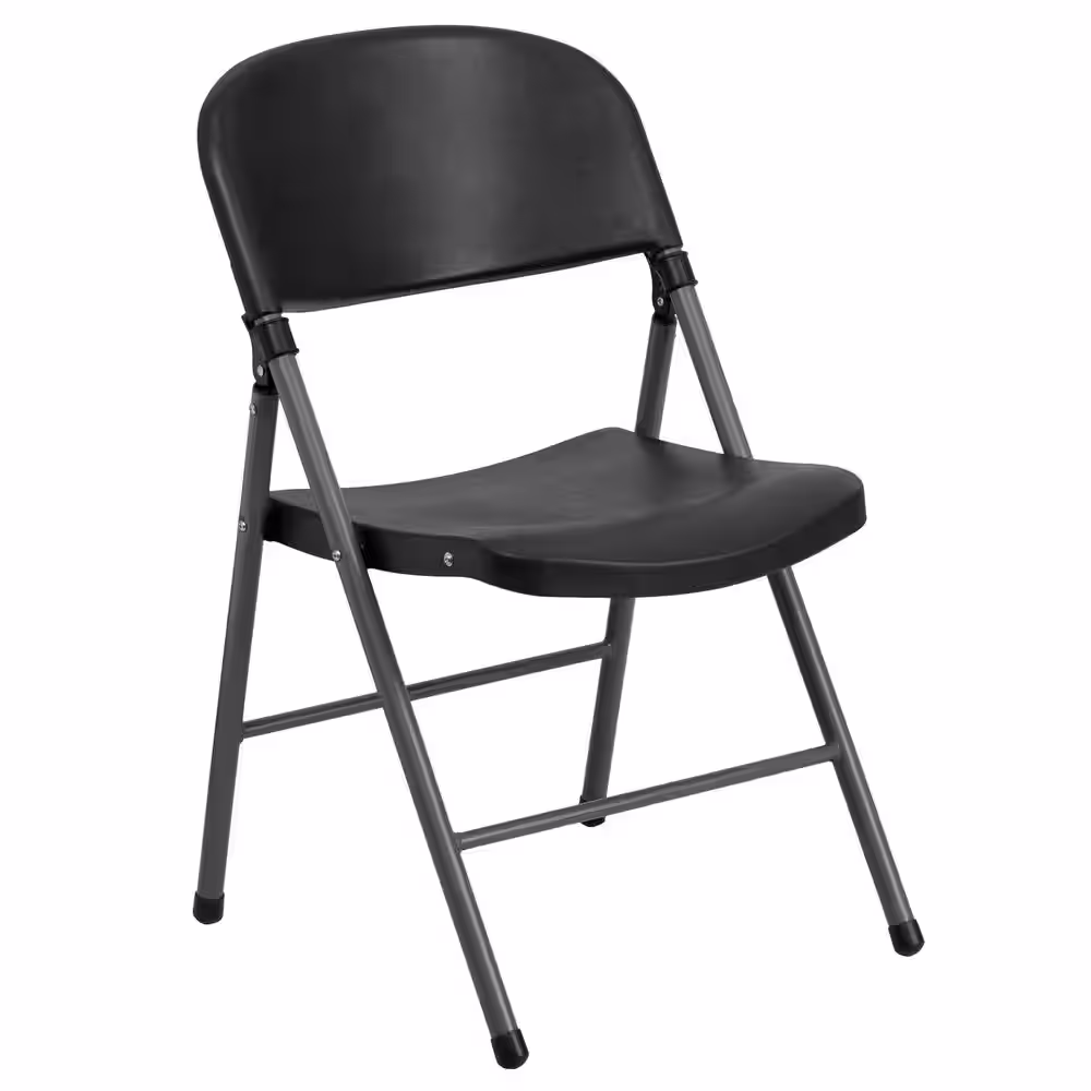Flash Furniture Hercules Series 330 lb. Capacity Black Plastic Folding Chair with Charcoal Frame