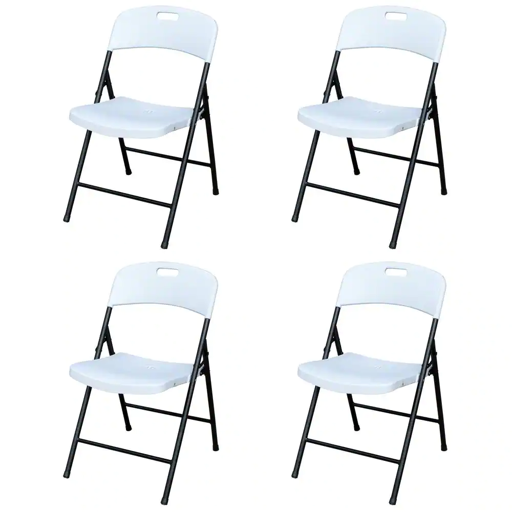 Plastic Development Group Outdoor White Plastic Folding Party Chair with Steel Frame Supports (4-Pack)