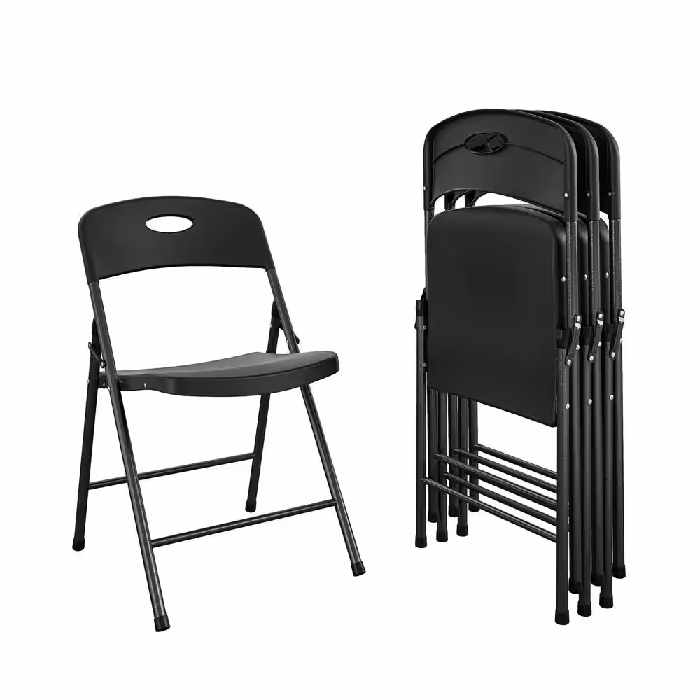None Solid Resin Black Plastic Folding Chair Indoor/Outdoor Double Braced (4-Pack)