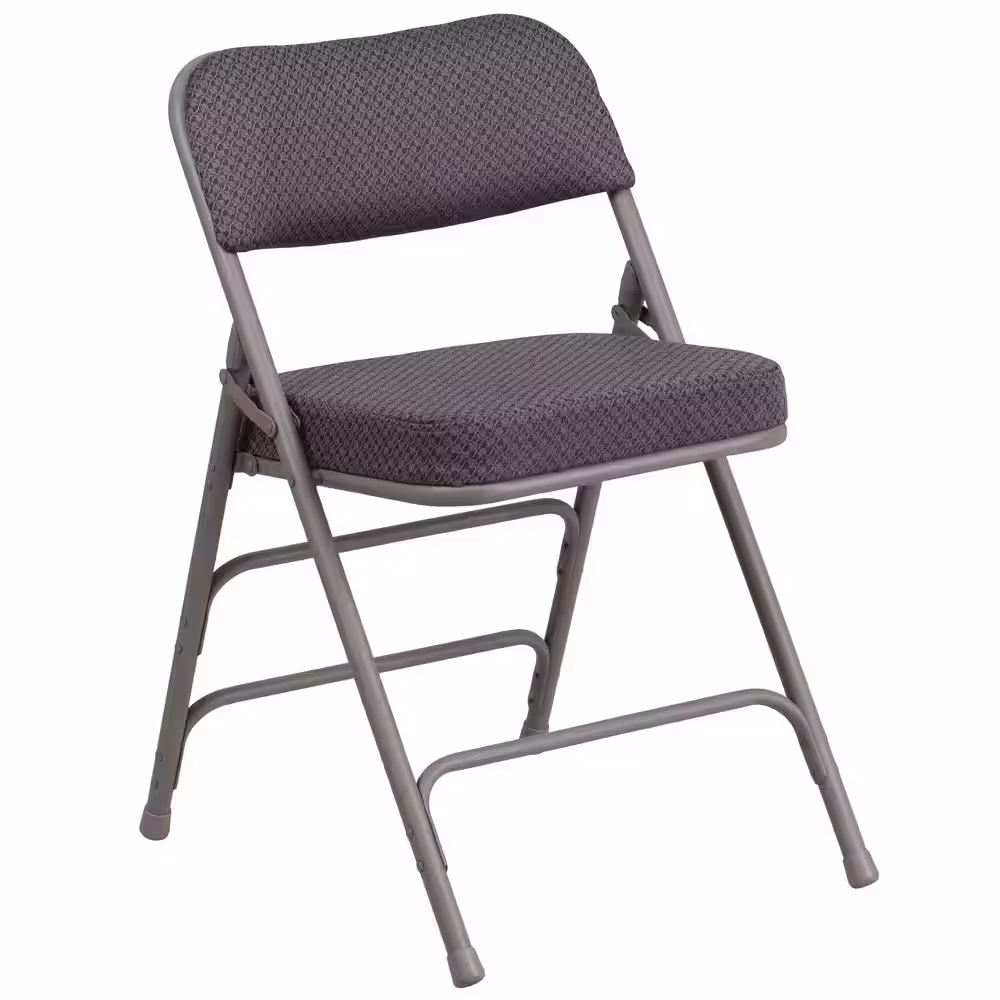 Flash Furniture Hercules Series Premium Curved Triple Braced & Quad Hinged Gray Fabric Upholstered Metal Folding Chair