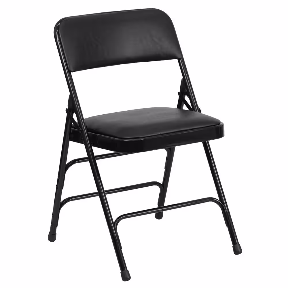 Flash Furniture Hercules Series Curved Triple Braced & Double Hinged Black Vinyl Upholstered Metal Folding Chair
