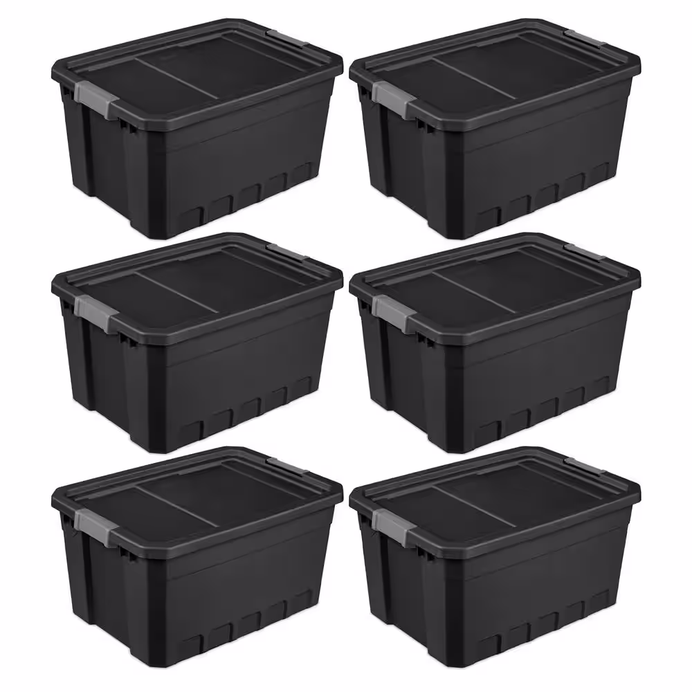 Sterilite 19 gal. Rugged Industrial Stackable Storage Tote with Lid in Black (6-Pack)