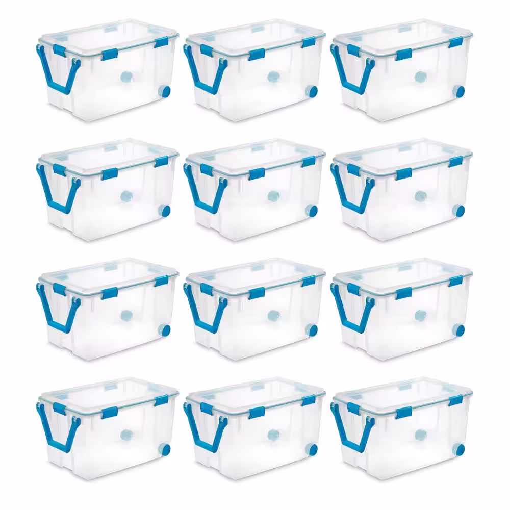 Sterilite 120 qt. Plastic Storage Container with Gasket Latch Lid in Clear, 12-Pack