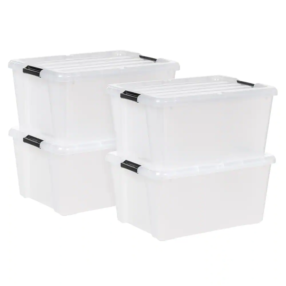 IRIS 45 Quart Buckle Up Storage Box, Clear/Black, Set of 4