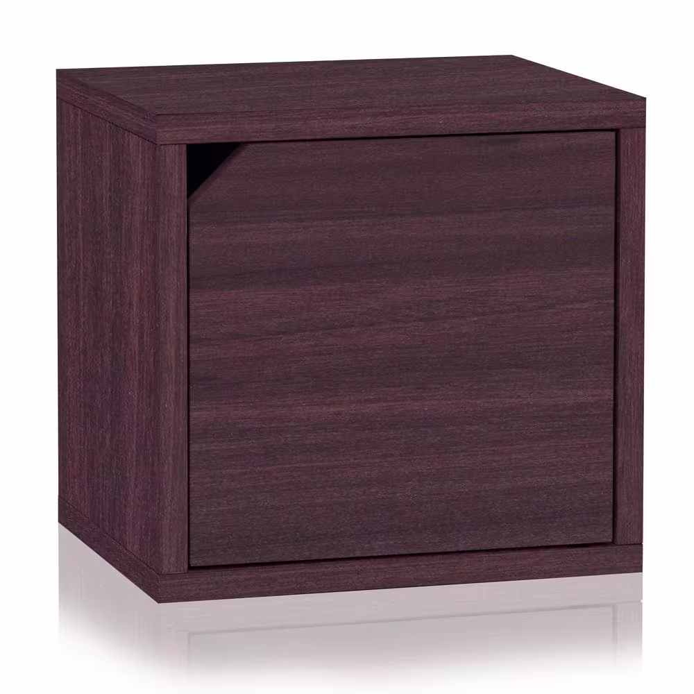 Way Basics 12.6 in. H x 13.4 in. W x 11.2 in. D Royal Walnut Eco Stackable Storage Cube Organizer with Door